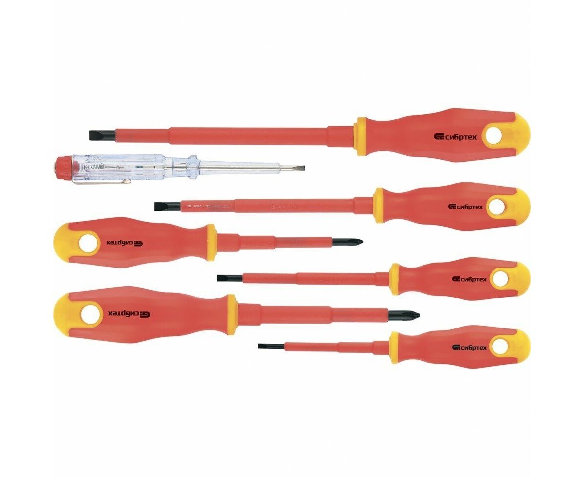 Набор отверток диэлектрических Сибртех 12936 7 предметов/до 1000В/тестер/CrV/двухкомпонентные рукоятки