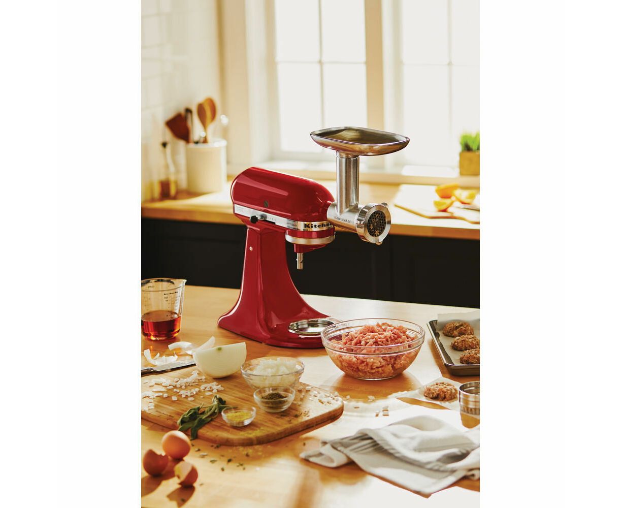 Переработать мясо в нежнейший фарш без хрящей и посторонних твердых кусочков поможет насадка-мясорубка KitchenAid. Она идеально дополнит кухонную машину от американского бренда. С помощью неё вы сможете приготовить: