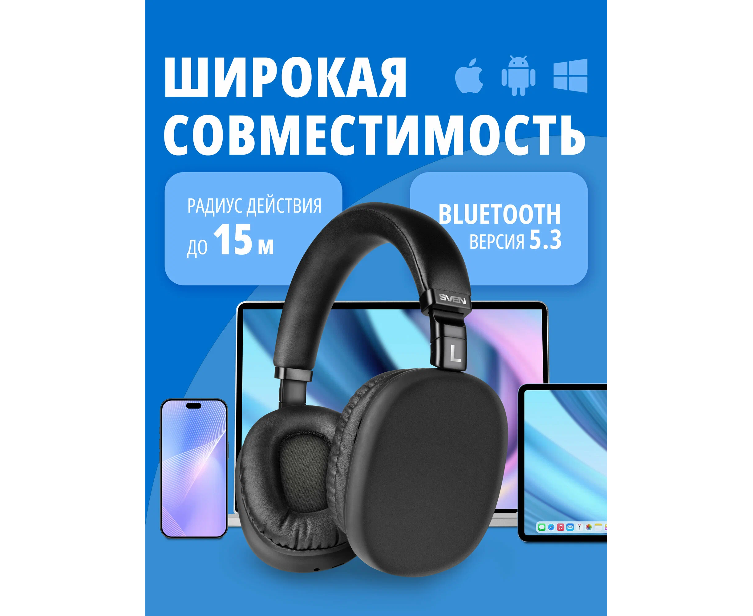 Наушники bluetooth полноразмерные с микрофоном SVEN AP-B325MV, чёрный
