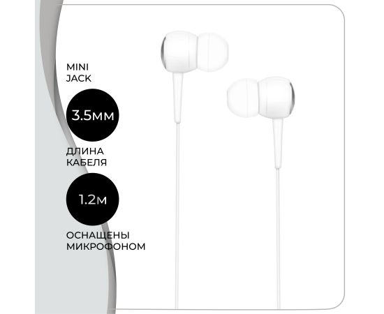 Наушники с микрофоном;вставные (затычки);чувствительность 95 дБ;импеданс 16 Ом;вес 12 г;разъем mini jack 3.5 mm