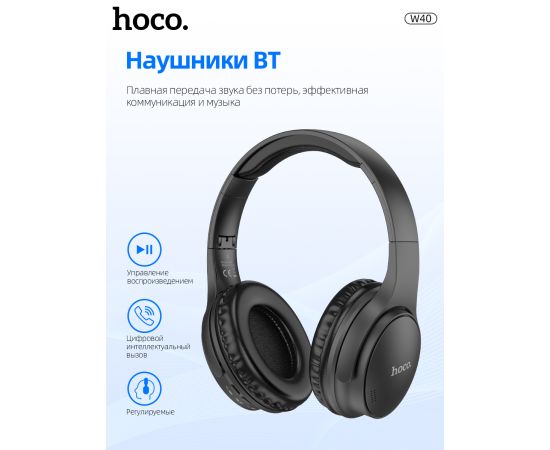 Наушники полноразмерные bluetooth HOCO W40 Mighty BT (черный)