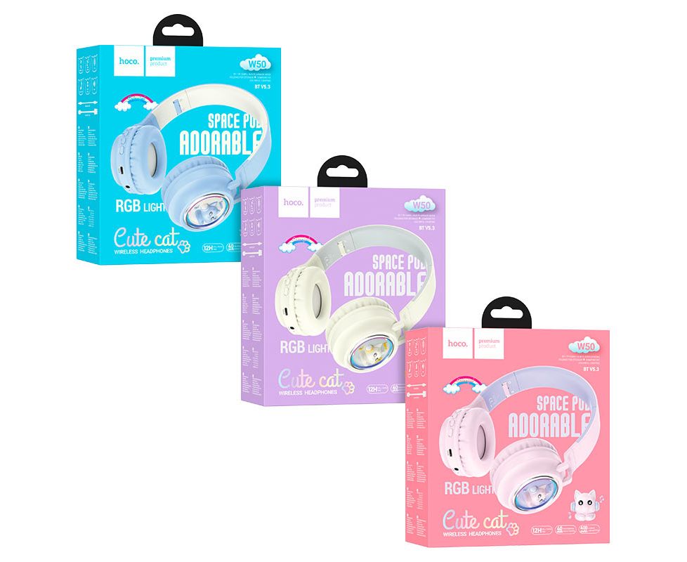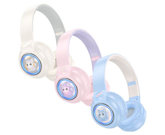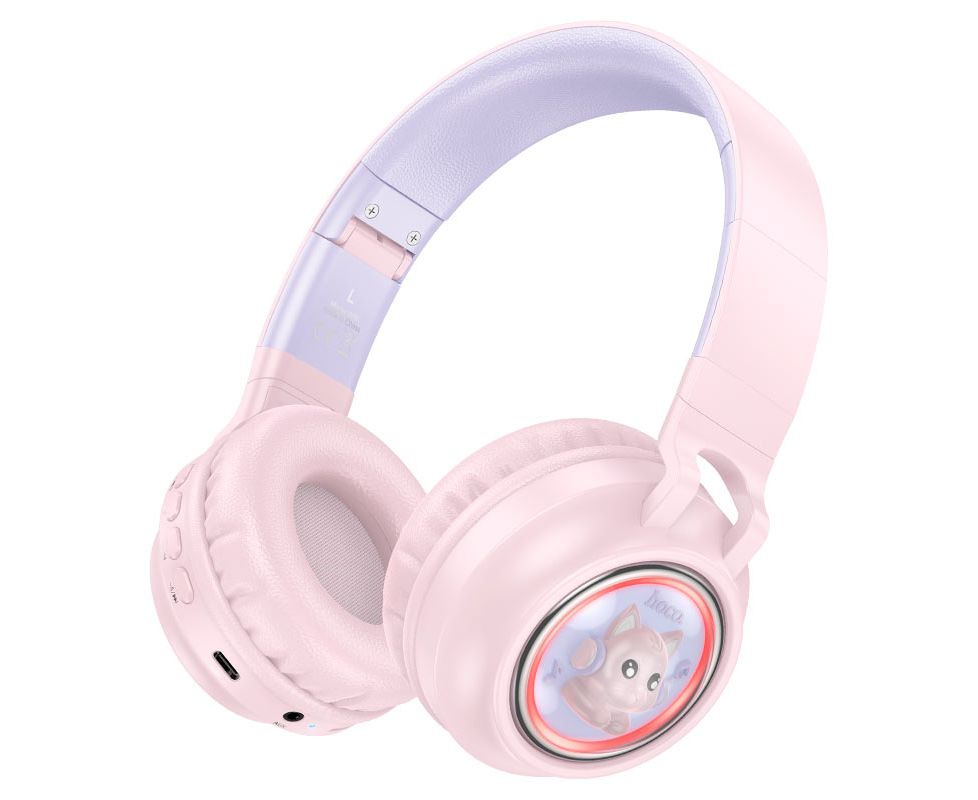 Наушники полноразмерные HOCO W50 Cute, bluetooth 5.3, AUX, 400mAh, цвет: розовый (1/30)