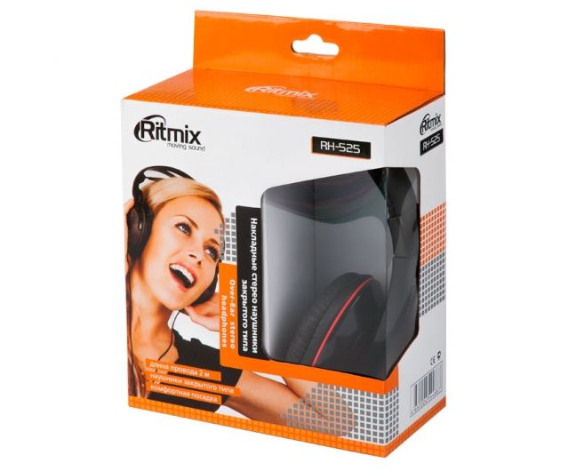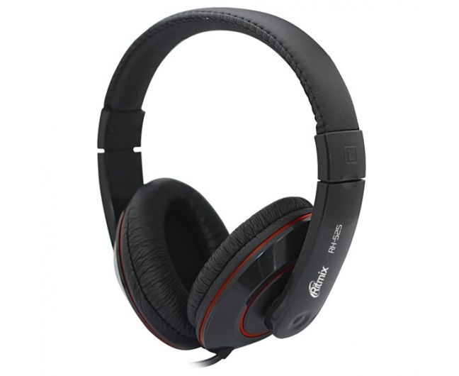 Наушники Ritmix RH-525 Black, мониторный тип, регулируемое оголовье, регулятор громкости, O40 мм, 3.5 mm jack, кабель: 2 м