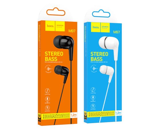 Наушники внутриканальные HOCO M97 Enjoy, микрофон, кнопка ответа, кабель 1.2м, цвет: чёрный (1/420)