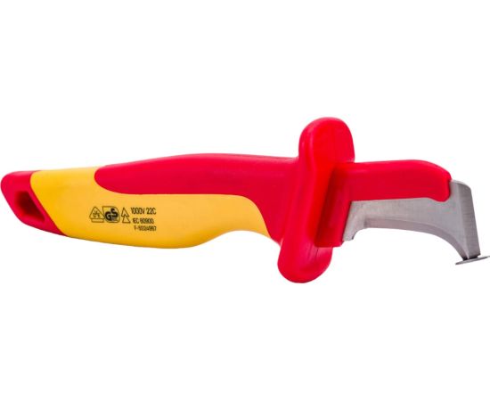 Gigant Нож диэлектрический GDK-3 используется для снятия оболочки с кабелей. Позволяет работать под напряжением до 1000 В. Оснащен эргономичной рукояткой из нескользящей термопластрезины для комфортной работы. На лезвии предусмотрена "пятка", предохраняющая от повреждения жилы.