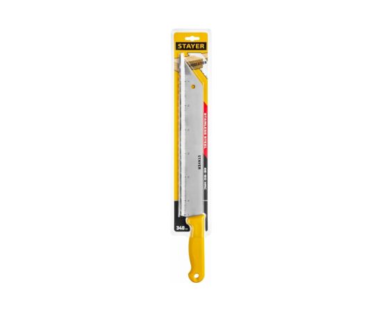 Нож для листовых изоляционных материалов, 340 мм STAYER 09592 предназначен для аккуратного и быстрого раскроя минеральной ваты, стекловолокна, пенополистирола.