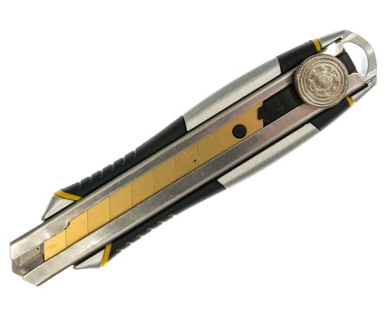 Строительный нож 18 мм в металлическом корпусе с винтовым зажимом Inforce 06-02-12 удобен для тяжелых работ. Прочное титановое лезвие сохраняет остроту заточки в течение продолжительного времени.