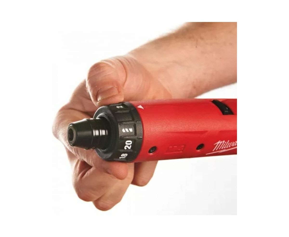 На корпусе аккумуляторной отвёртки Milwaukee M4 D-202B 4933440475 есть кольцо регулировки крутящего момента, которое даёт возможность быстро и просто выставлять необходимое для работы значение.