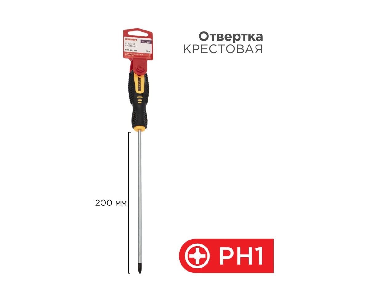 Отвертка крестовая Rexant 12-6406 PH 1х200мм, двухкомпонентная рукоятка