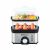 Пароварка электрическая, 3 в 1 (яйцеварка, пароварка, сковорода), мощность 300-400 Вт, 2,0 л, 2 яруса, резервуар для воды 0,32 л, механическое управление, таймер на 45 минут, отключение без воды. Цвет корпуса: нержавеющая сталь / черный. Длина шнура 90 см.