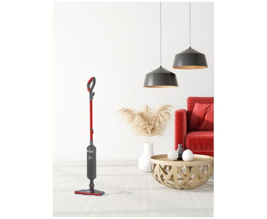 Резервуар для воды имеет объём 420 мл. Пользоваться прибором очень легко благодаря удобной ручке эргономичной формы. В комплект входят две тканевые насадки, рамка для чистки ковров и мерный стаканчик.