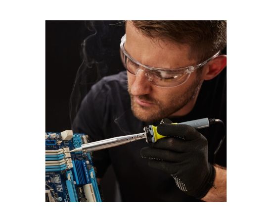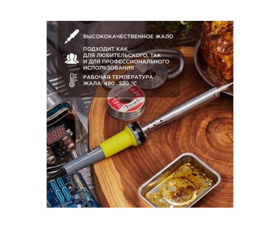 Нагреватель имеет керамическую трубку, которая повысит энергоэффективность прибора. Паяльник оснащен ударопрочной рукояткой из термостойкого пластика, с резиновой накладкой, которая сделает работу с инструментом легкой и приятной.