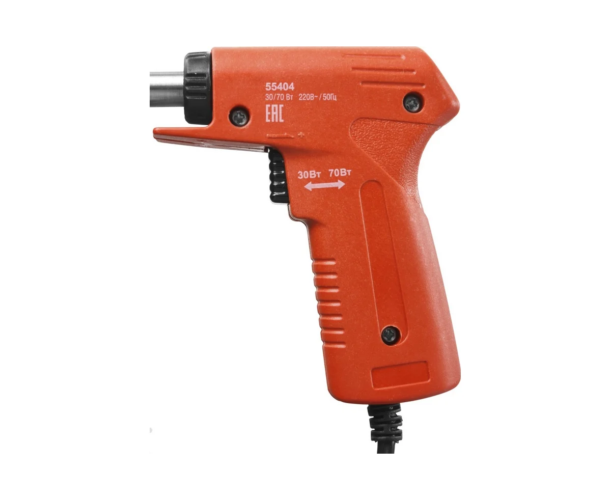 Преимущества ЗУБР МАСТЕР пистолетная рукоятка, 30-70Вт конус 55404