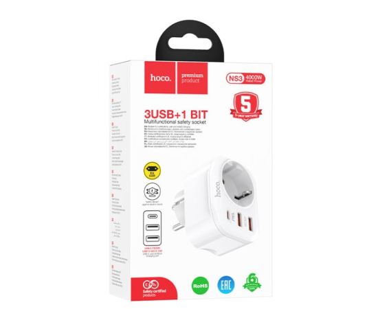Переходник для розетки HOCO NS3 Multifunctional socket 1C2A PD20W (белый)