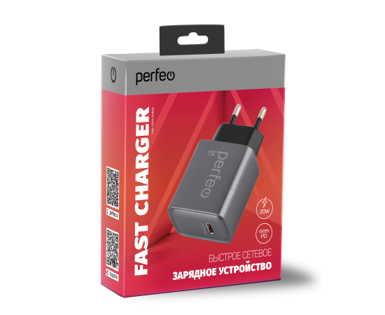 Сетевое зарядное устройство PERFEO с разъемом TYPE-C, 20W, серый (I4668)