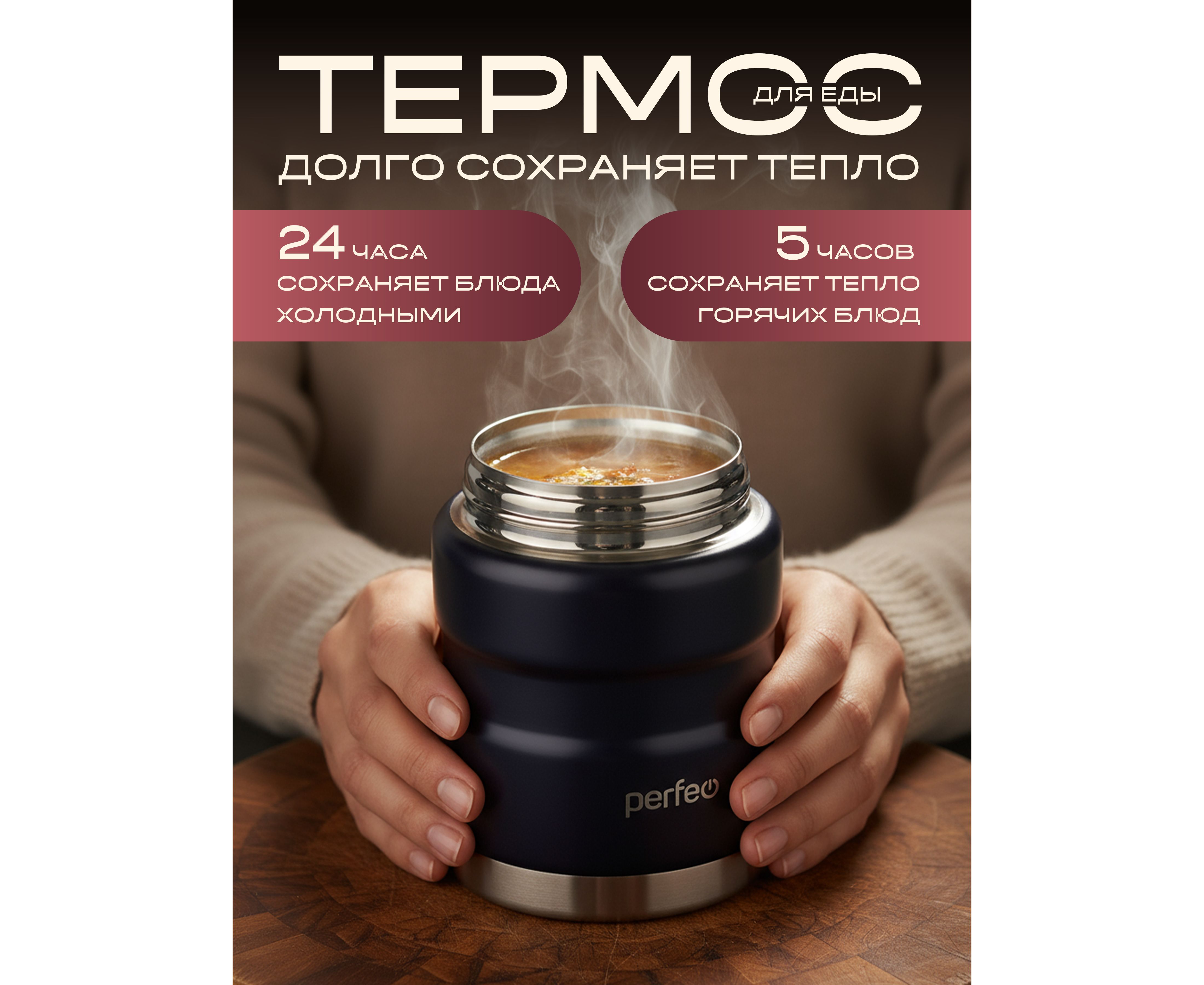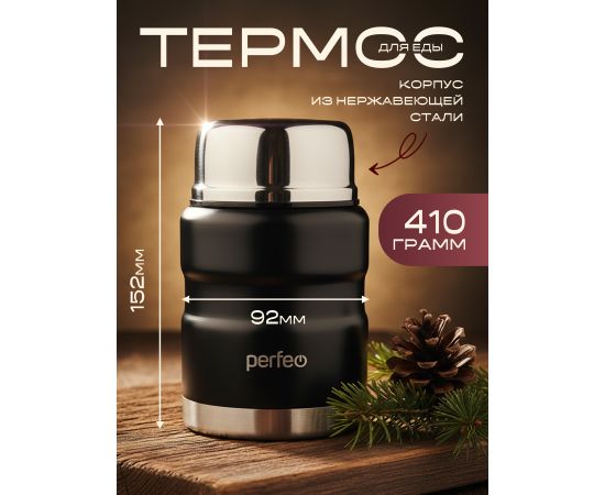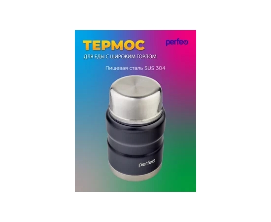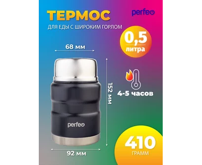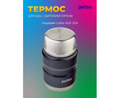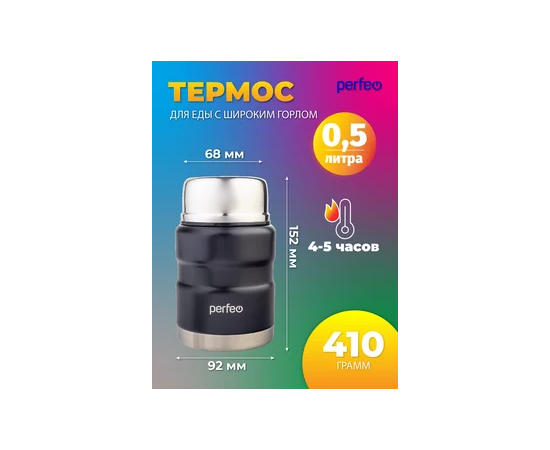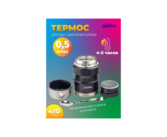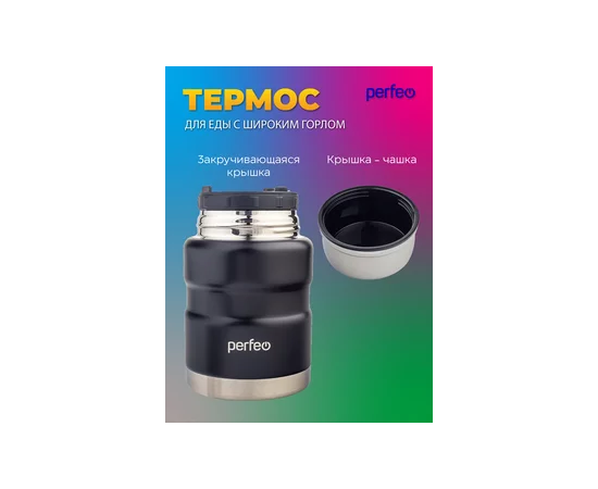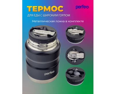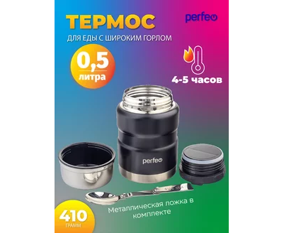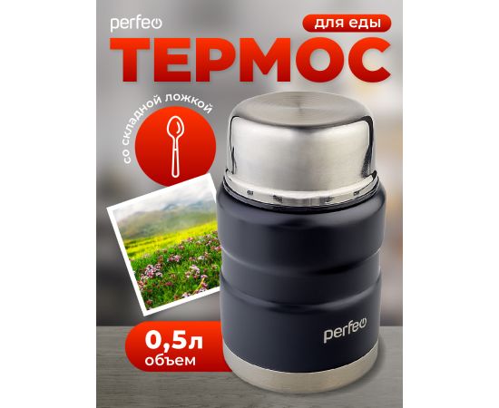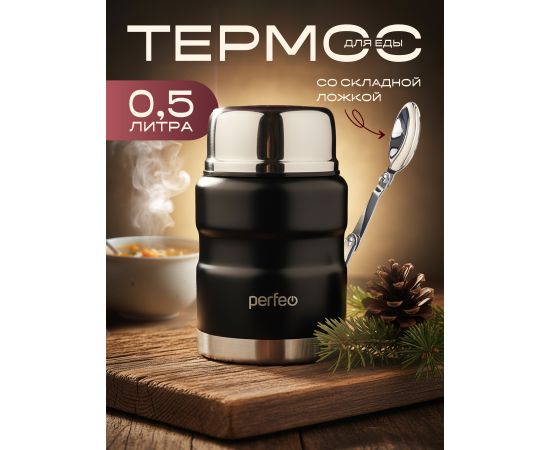 Термос для еды PERFEO с широким горлом, ложкой, объем 0,5 л., черный, (Арт. PF_E1371)