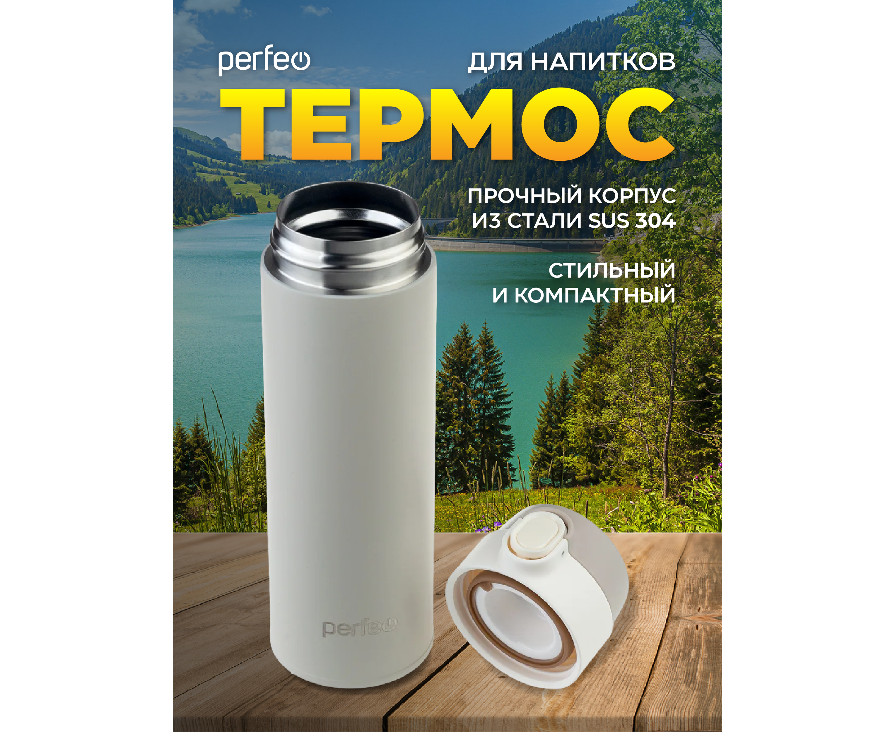 Термос для напитков PERFEO с крышкой-поилкой, объем 0,5 л., серый, (Арт. PF_D0208)