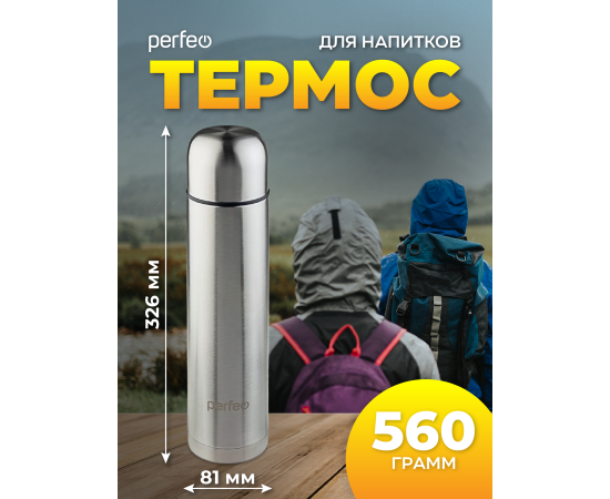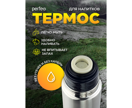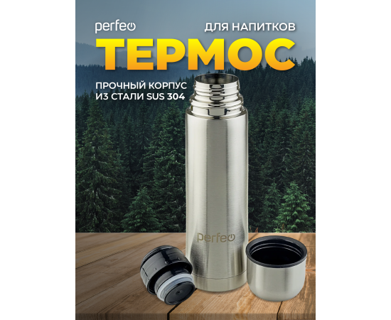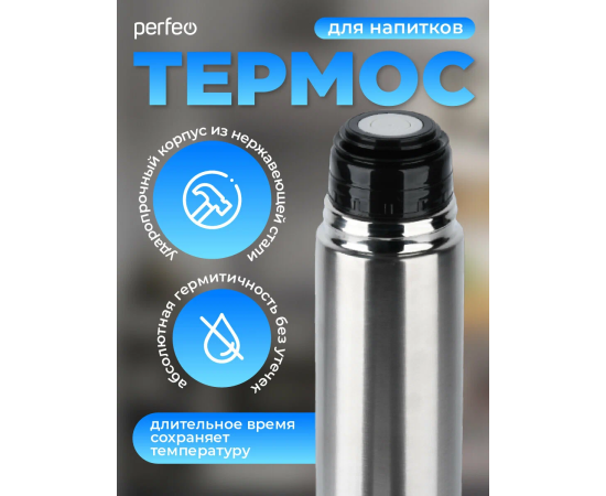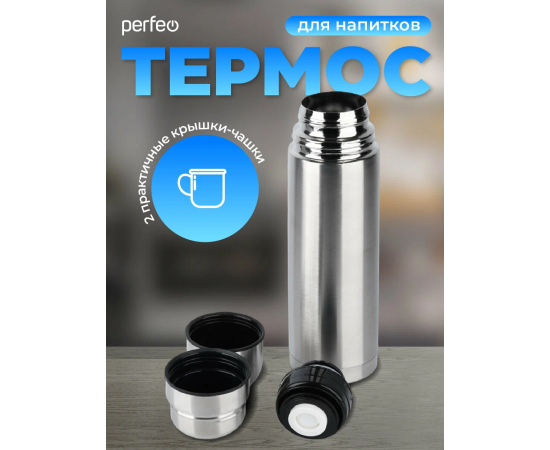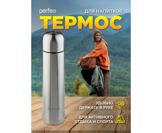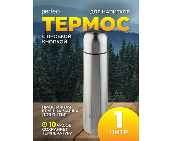 Термос для напитков PERFEO с пробкой-кнопкой, объем 1 л., нержавеющая сталь (PF_C3713)