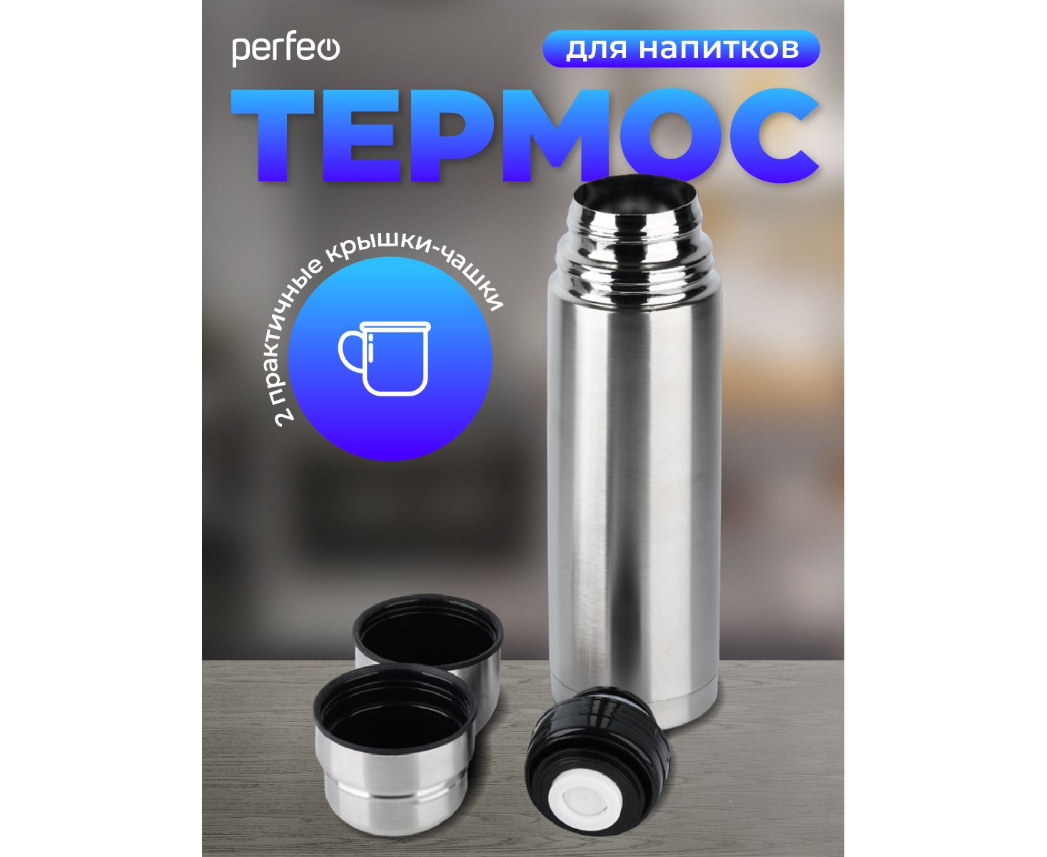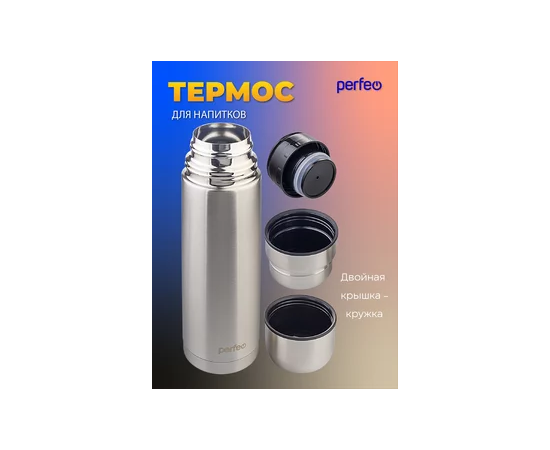 Термос для напитков PERFEO с пробкой-кнопкой, сумкой, объем 0,75 л., нержавеющая сталь, (Арт. PF_E1365)