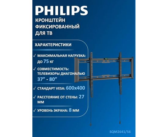 Кронштейн для ТВ 37"-80", Max 75кг, расстояние от стены 27мм