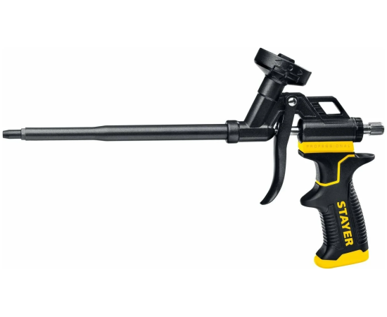 Пистолет для монтажной пены, тефлоновое покрытие профессиональный STAYER * Тефлоновое покрытие * Профессиональная герметичная конструкция металлического корпуса * Ствол, игольчатый и шариковый клапаны из нержавеющей стали Для работы с монтажной пеной в баллонах Пистолеты предназначены для нанесения монтажной пены при установке окон, дверей и других элементов строительных конструкций.