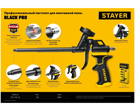 Пистолет для монтажной пены STAYER Professional 06862_z01/06862_z02 тефлоновое покрытие