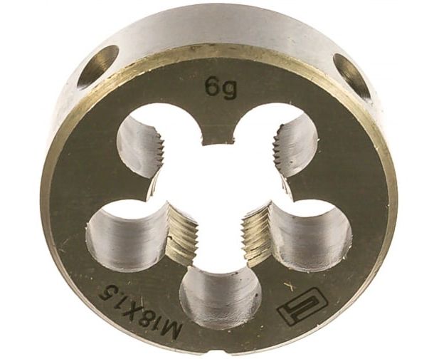 Плашка М18х1.5 мм СИБРТЕХ 77048 широко используется в слесарных мастерских и производственных цехах для нарезания внешней резьбы. Изделие выполнено из инструментальной стали, выдерживает высокие нагрузки. Режущие кромки обладают твердостью 60 HRc, что полностью соответствует требованиям ГОСТа (60–62 HRc).