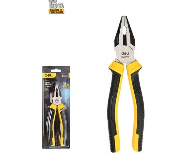 Плоскогубцы Deli DL0003 комбинированные 200мм, двухкомпонентная прорезиненная рукоять