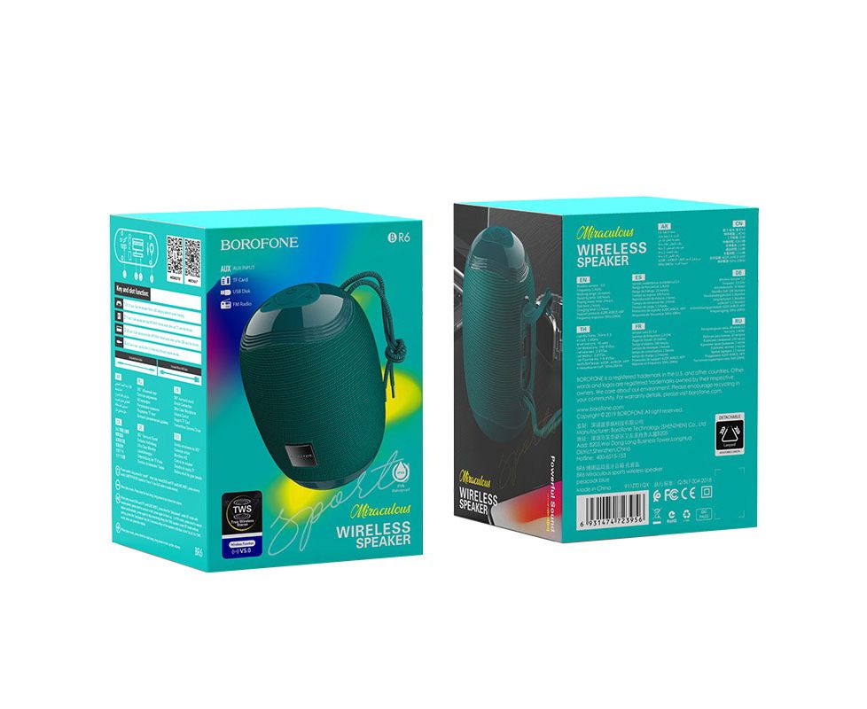 Портативная колонка Borofone BR6 Miraculous sports, peacock blue