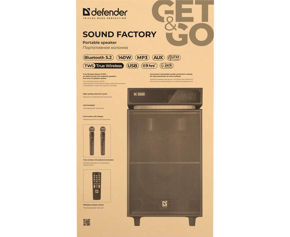 Портативная колонка DEFENDER Sound Factory 140Вт, BT/USB/TF/FM/15"/wooden 65093