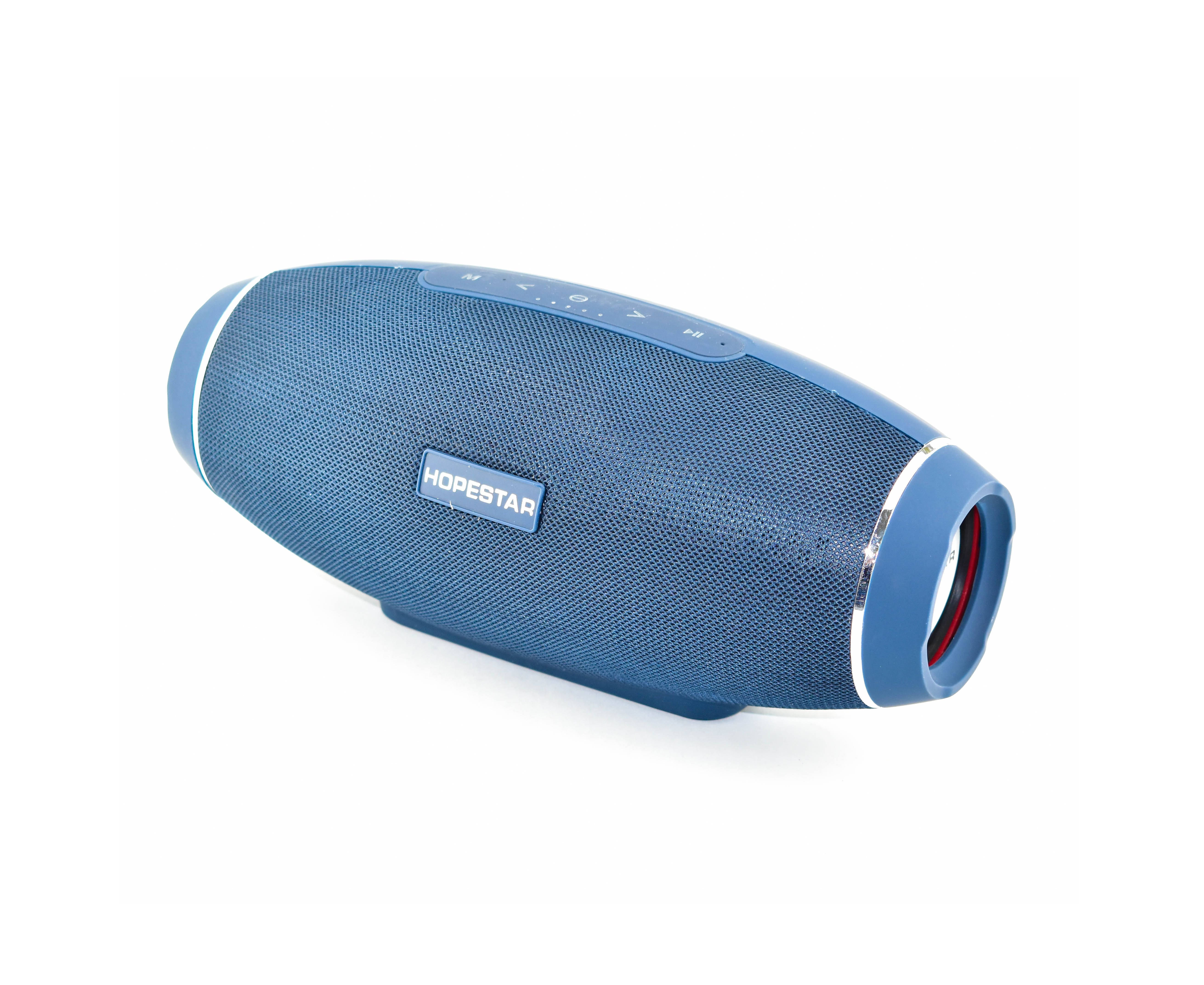 Портативная акустическая стерео колонка Hopestar H20 - это оригинальная брендовая Bluetooth колонка с популярным современным дизайном регби-мяча и великолепным насыщенным звуком. Пожалуй, самая мощная и популярная модель производителя Hopestar. В отличии от других моделей, H20 имеет аж три динамика, что делает ее звучание более громким, глубоким и наполненным во всем диапазоне. По бокам колонки расположены подвижные низкочастотные мембраны с лого HOPESTAR, и как у модной сейчас колонки JBL Charge, выглядят эффектно и впечатляюще, визуально подчеркивая глубину звучащих басов.