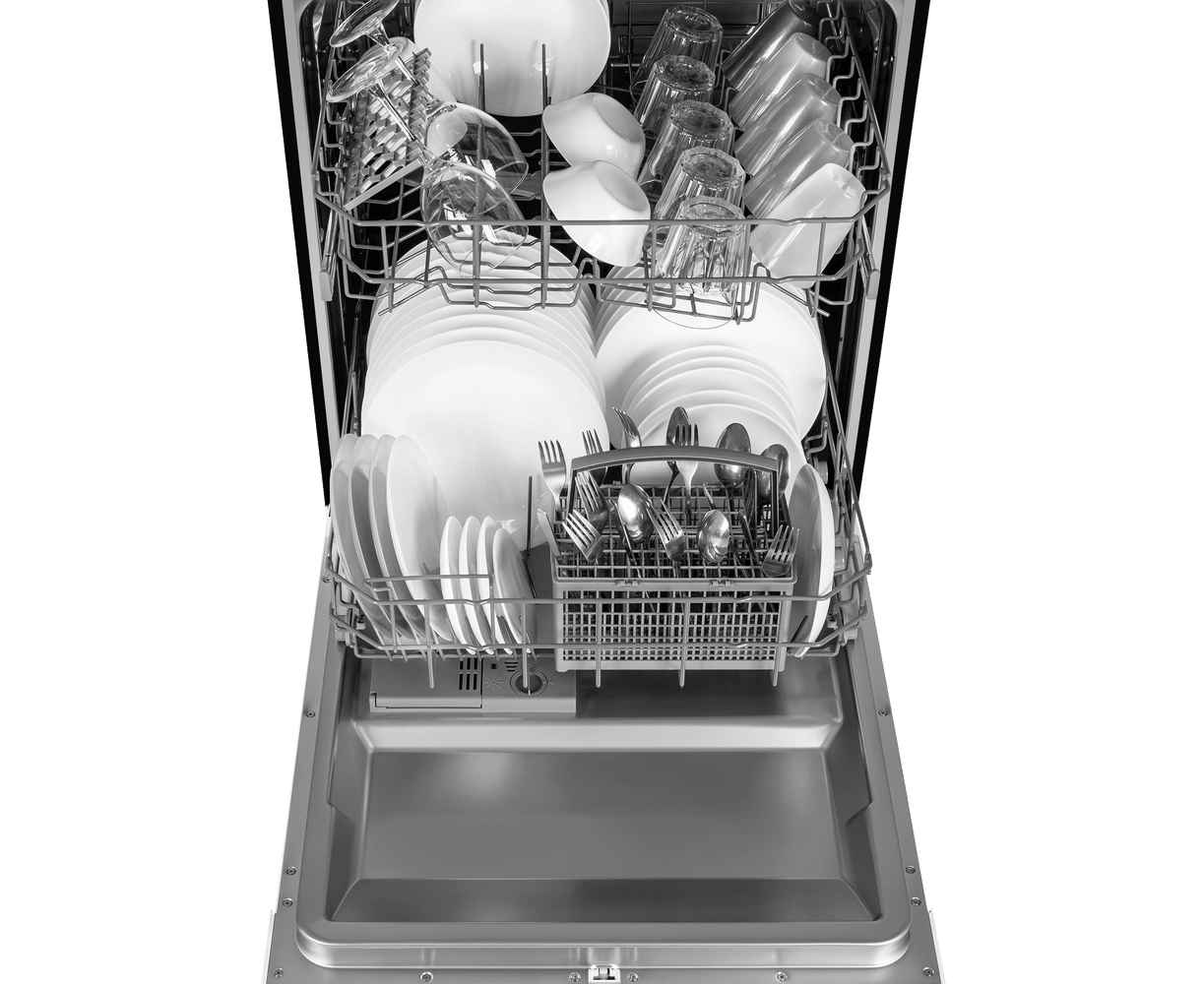 В посудомоечную машину помещается много посуды. Можно накопить её в течение дня или помыть сразу всё после семейного торжества или вечеринки с друзьями. Вместимость — до 12 комплектов посуды.