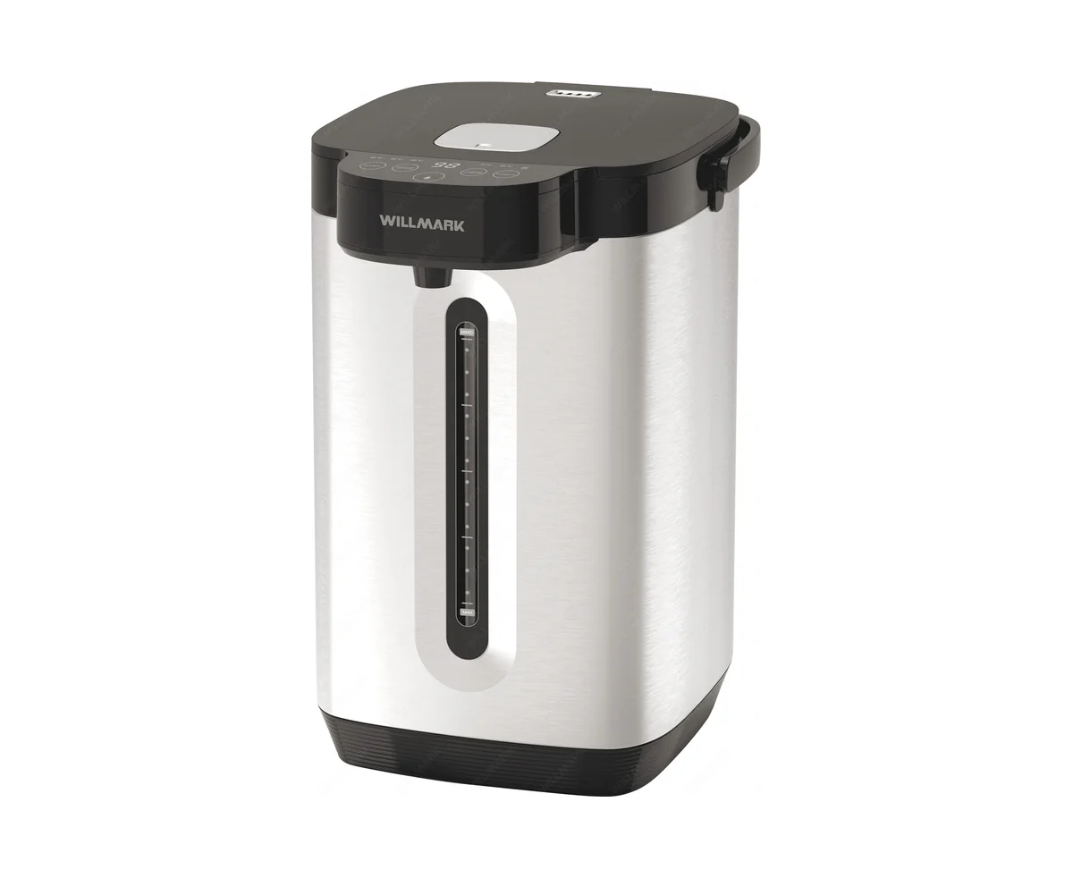 Поттер WILLMARK WAP-609G — отличный помощник на кухне, сочетает в себе функции электрочайника и термоса. Имеет стильный внешний вид и минималистичный дизайн. Термопот служит для подачи воды заданной температуры и поддержания температуры воды с помощью периодического включения и отключения нагрева. Дисплей проинформирует о заданных параметрах. Термопот оснащен функцией выбора температуры и может не только вскипятить, но и нагреть воду до температуры 45, 55, 65, 75, 85 и 95 °С, что очень удобно при заваривании различных сортов чая. Поттер WILLMARK -стильное и надежное приобретение для Вашего дома!