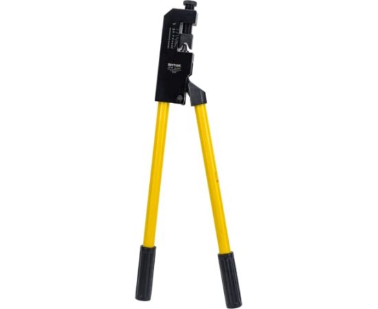 Ручные пресс-клещи SHTOK ПК-120У 03004 производят опрессовку медных и алюминиевых наконечников одним движением. Предназначены для использовании на производстве. Регулировка момента затяжки при помощи винта и шкалы под обжимаемый наконечник.