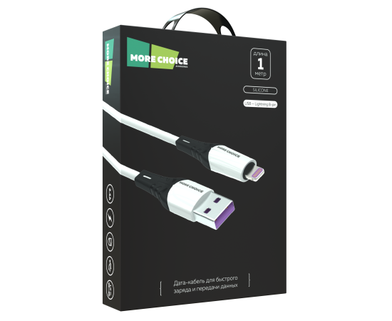 Материал коннектора: металл Наружное покрытие: силикон Спецификация медной проволоки кабеля: 55/0,08*2С+10/0,08*2С Коннектор: USB - Lightning 8-pin Сила тока: 2.4А. Длина: 1 м Комплектация: дата-кабель, держатель для кабеля, буклет. Цвета: Black, White
