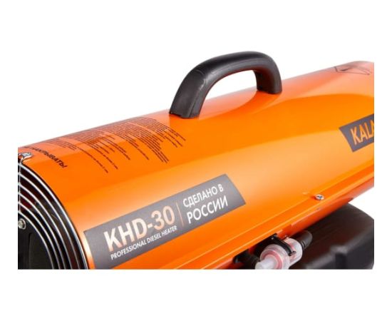 Дизельная пушка прямого нагрева KalashnikovKHD-30 НС-1432367 – это мощный обогреватель, работающий на дизельном топливе. Предназначена для обогрева нежилых помещений и локального прогрева рабочих поверхностей. Тепловая мощность 30кВт, производимая тепловой пушкой – вполне достаточна для использования устройства в качестве мощного генератора тепла.