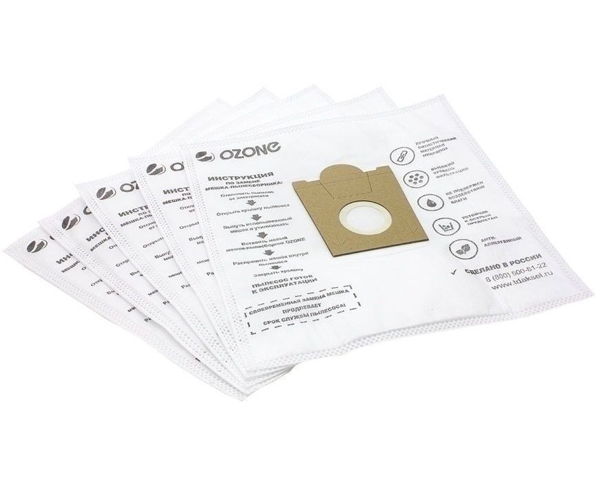Мешки для пылесоса BOSCH (Бош), SIEMENS (Сименс), SCARLETT (Скарлет), KRUPS (Крупс), CONTI (Конти), PRIVILEG (Привилег), ENTRONIC (Ентроник), HANSEATIC (Хансетик), SEVERIN (Северин), PROFILO (Профило), SHIVAKI (Шиваки), UFESA (Уфеса). Мешки для пылесоса бренд OZONE, тип оригинального мешка: Typ G, синтетические. Мешок для пылесоса 5/10/15 шт. ВЫСОКИЙ УРОВЕНЬ ФИЛЬТРАЦИИ. Пылесборник для пылесоса одноразовый Ozone изготовлен из многослойного синтетического материала, способного качественно изменить вашу уборку. Пылесборник задерживает мельчайшие частицы пыли и мусора благодаря высокому уровню фильтрации. Мешок имеет ПРОЧНЫЙ МАТЕРИАЛ. Увеличенная прочность мешка, позволяет собирать все виды мусора, в том числе осколки стекла, гвозди, обеспечивая защиту внутренних элементов пылесоса. Мешки для пылесоса отличаются устойчивостью к воздействию жидкости. УВЕЛИЧЕННЫЙ СРОК СЛУЖБЫ. Снижают нагрузку на двигатель пылесоса, сохраняя постоянно высокую мощность всасывания и позволяют продлить срок службы турбины пылесоса. МИКРОФИЛЬТР В ПОДАРОК. Внутри каждой упаковки вложен 1 микрофильтр, своевременная замена которого позволит повысить качество уборки и эффективность работы техники.
