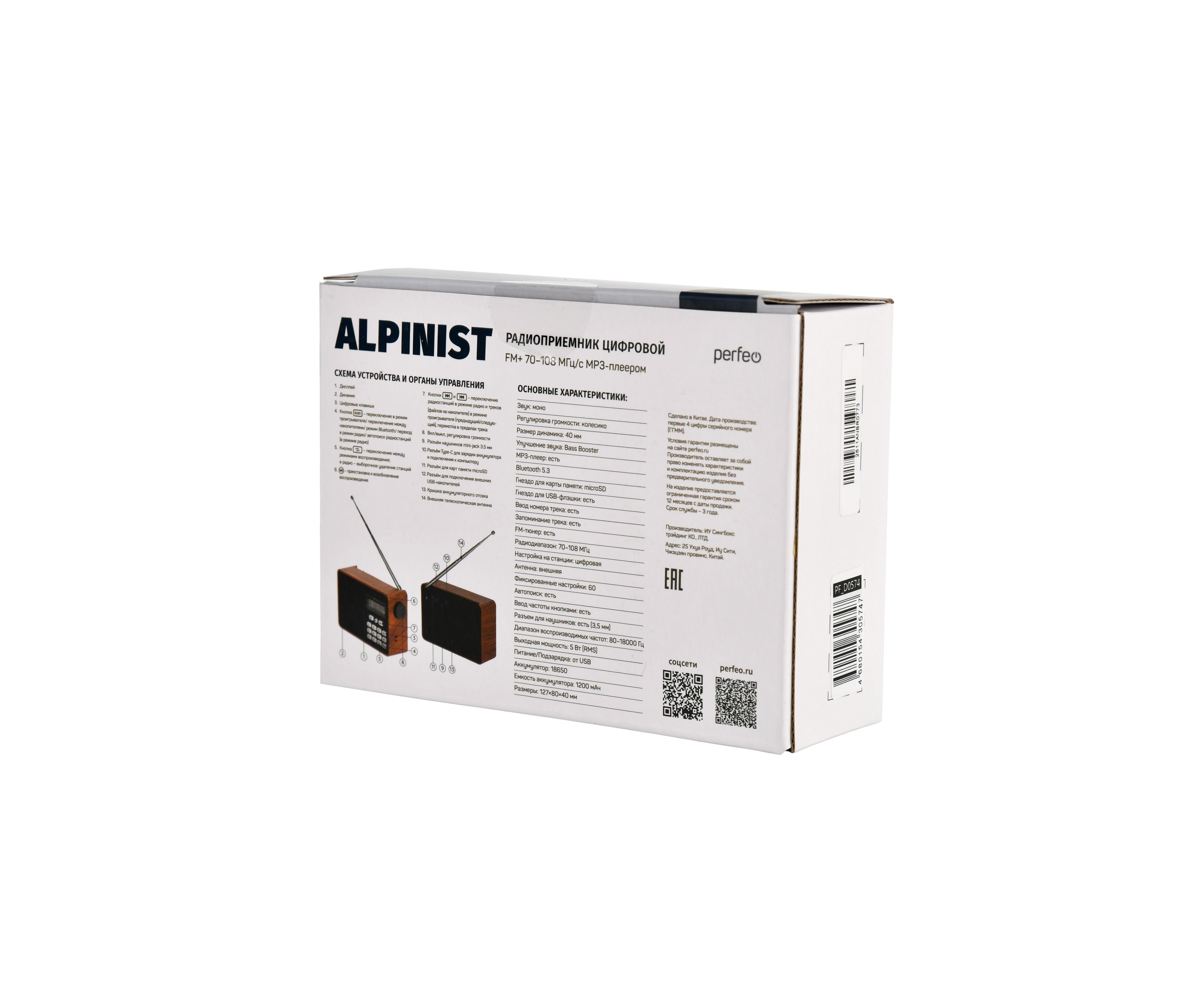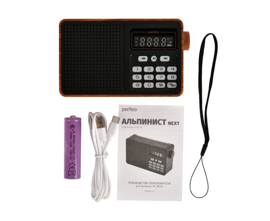 Радиоприемник Bluetooth цифровой Perfeo ALPINIST Next FM+ 70-108МГц/ MP3/ Bluetooth 5.3/ 18650/ Коричневый, (Арт. PF_D0574)