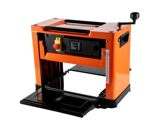 Безопасность работы обеспечивается многосекционной зубчатой защитой от обратного удара при рейсмусовании по всей рабочей ширине станка. Автоматическая подача заготовки со скоростью 8,5 метров в минуту увеличивает производительность труда, процесс обработки осуществляется значительно быстрее. Два ножа из быстрорежущей стали вращаются со скоростью 8000 об/мин, что гарантирует высокое качество обработки.