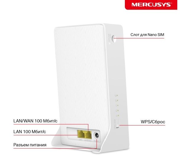 Интерфейсы: Порт WAN/LAN 10/100 Мбит/с, Порт LAN 10/100 Мбит/с, Слот для карты nano-SIM