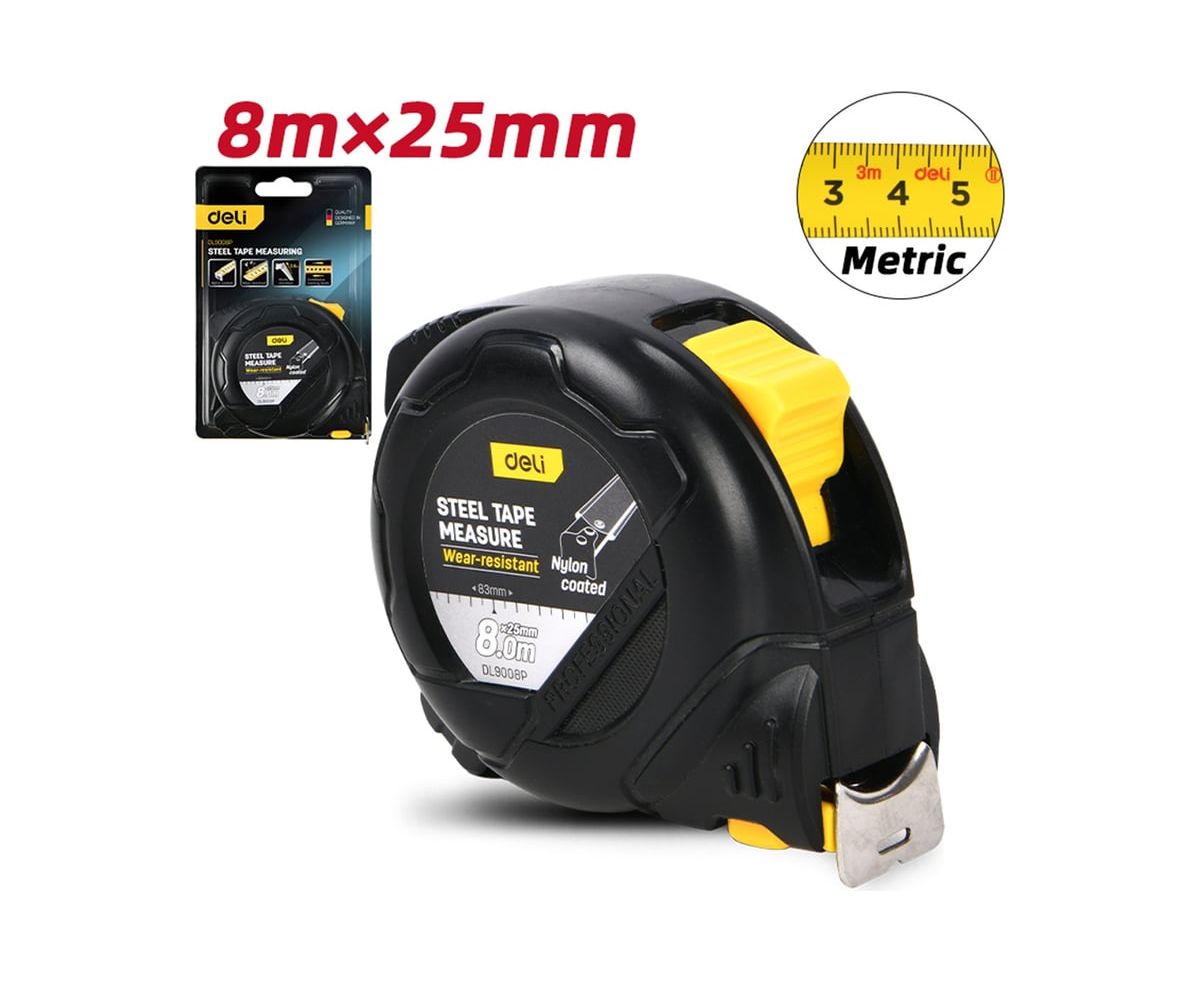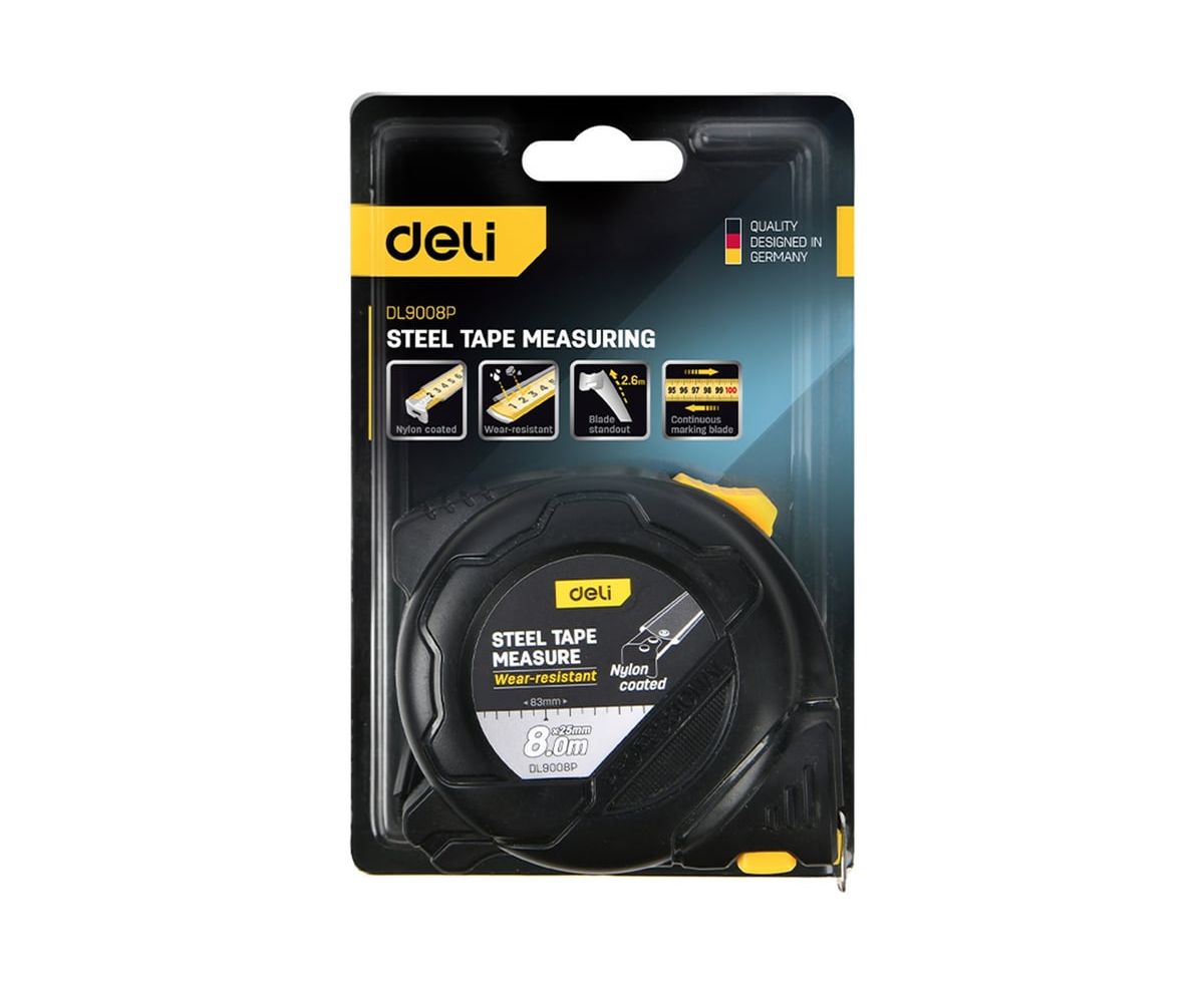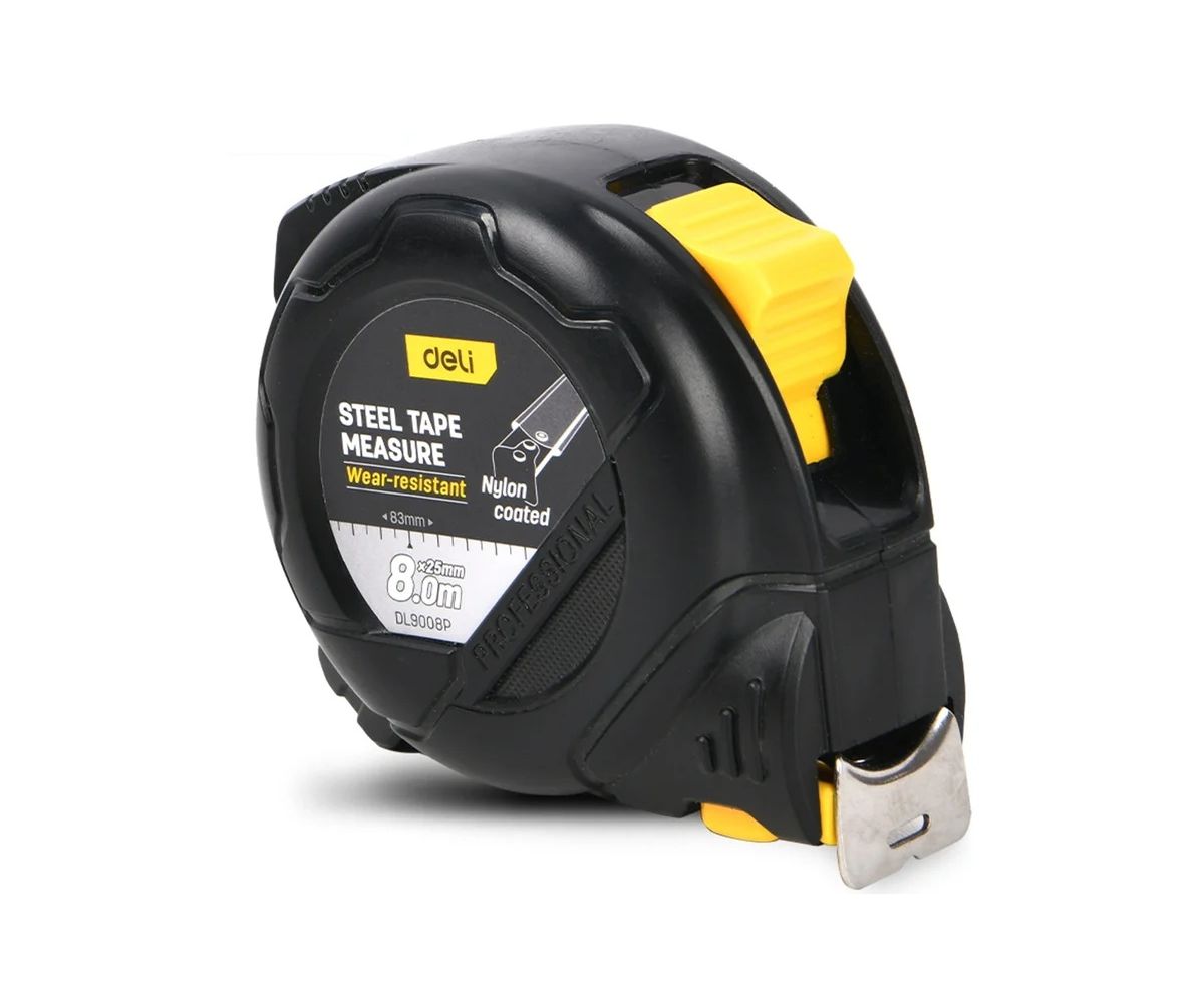 Профессиональная рулетка с двойным стопором Deli DL9008P - это надежный и удобный инструмент для точных измерений!