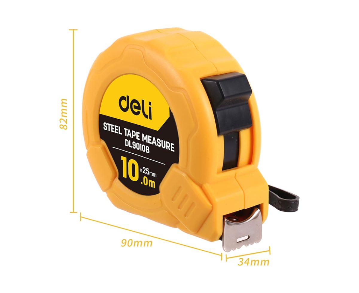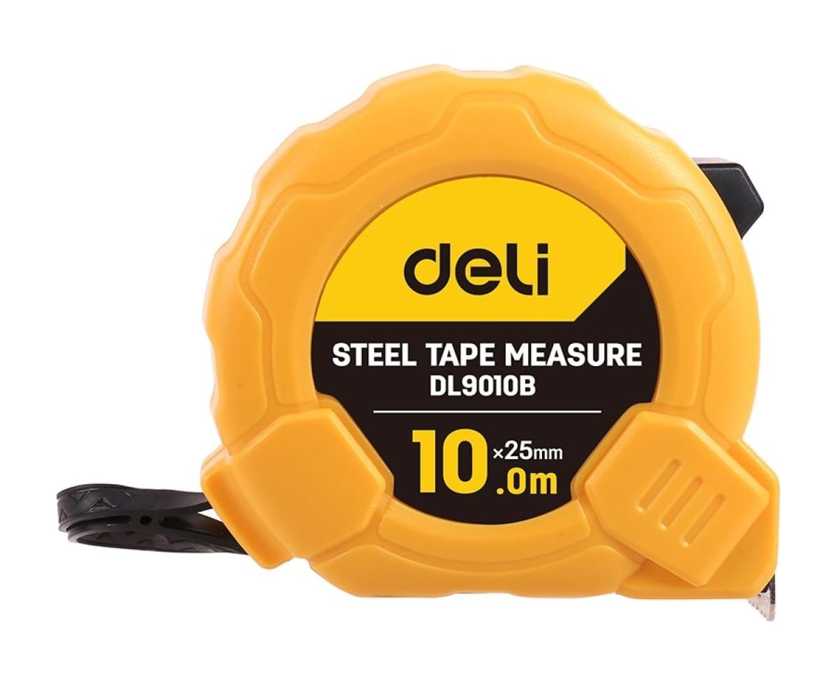 Рулетка Deli DL9010B 10мх25мм, метрическая, ударопрочный корпус
