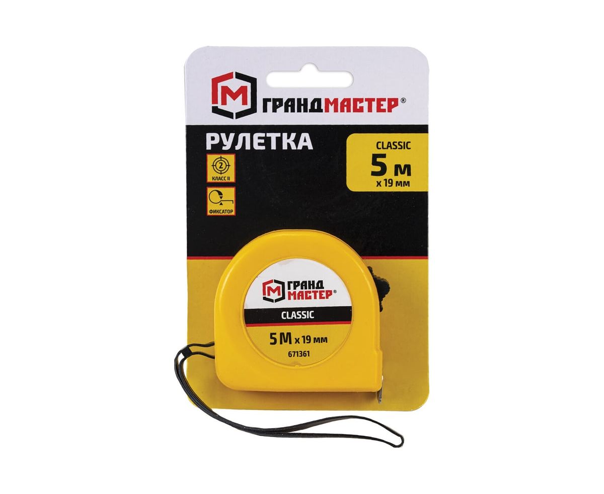 Рулетка измерительная ГРАНДМАСТЕР 671361 Classic 5м*19мм, пластиковый корпус, с фиксатором