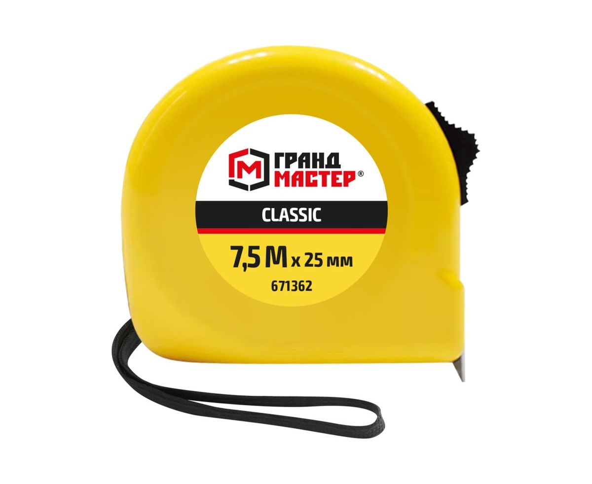 Рулетка измерительная ГРАНДМАСТЕР 671362 Classic 7,5м*25мм, пластиковый корпус, с фиксатором