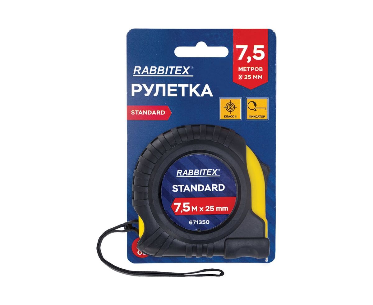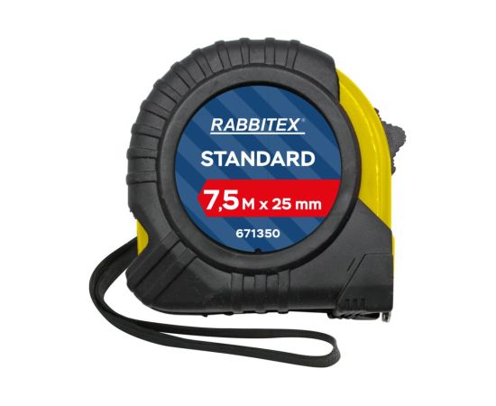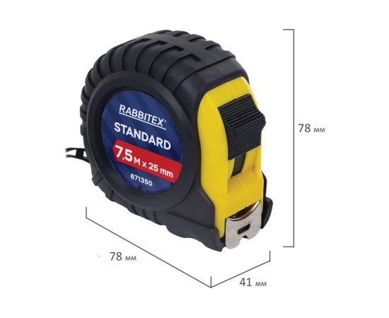 Рулетка измерительная RABBITEX 671350 Standard 7,5м*25мм, обрезиненный корпус, с фиксатором