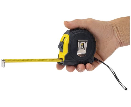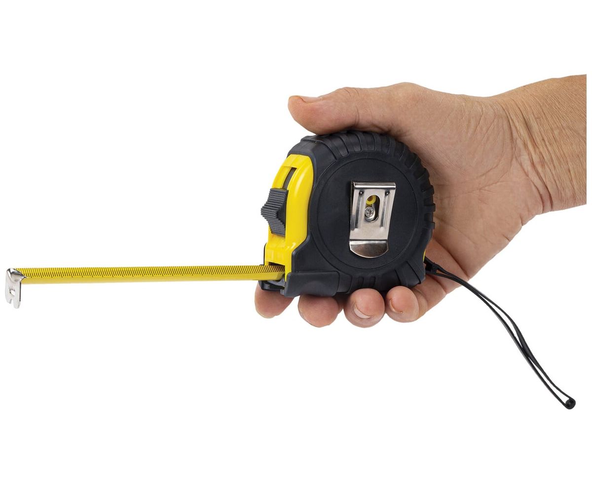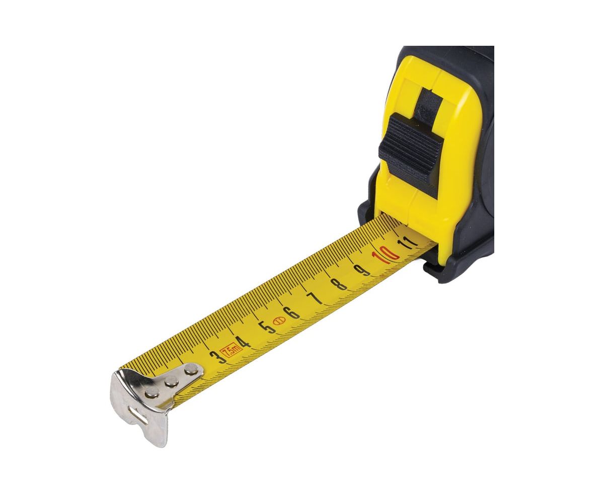 Размеры измерительной ленты: длина 7,5 метров, ширина 25 миллиметров.