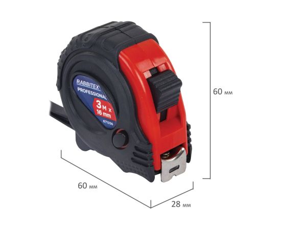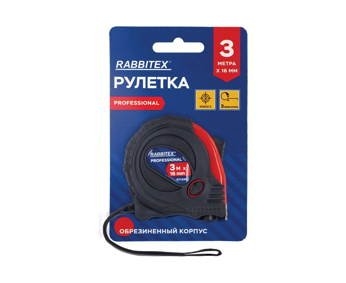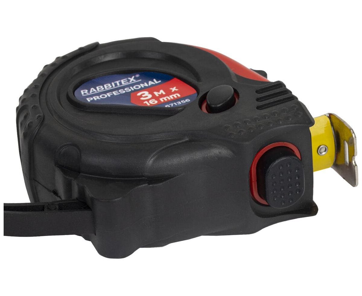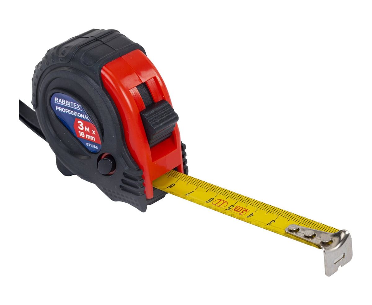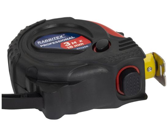 Рулетка измерительная RABBITEX 671356 Professional 3м*16мм, обрезиненный корпус, 3 фиксатора