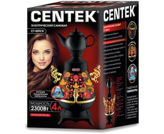 Самовар Centek CT-0092 B (черн+рисунок+золото)