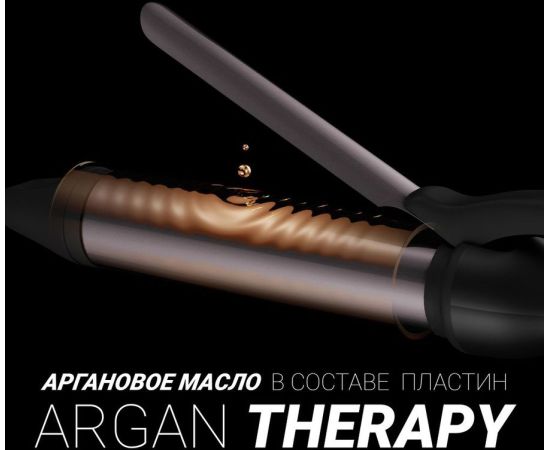 Описание: Профессиональный cтайлер. Argan Therapy – пластины обогащены Аргановым маслом. При нагреве волосы становятся восприимчивы к внешнему воздействию и Аргановое масло внедряется в структуру волос, позволяя им оставаться здоровыми и приобрести естественный блеск.