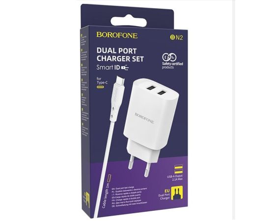 Сетевое зарядное устройство 2USB 2.1A в комплекте с дата-кабелем Type-C Borofone BN2 1м (White)